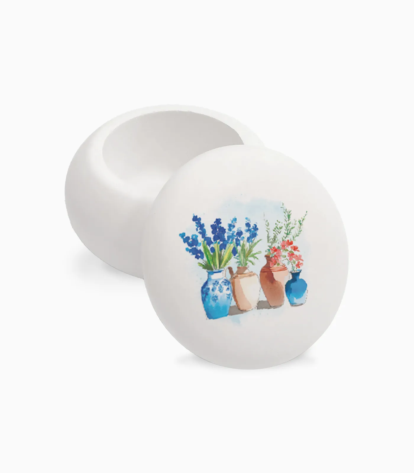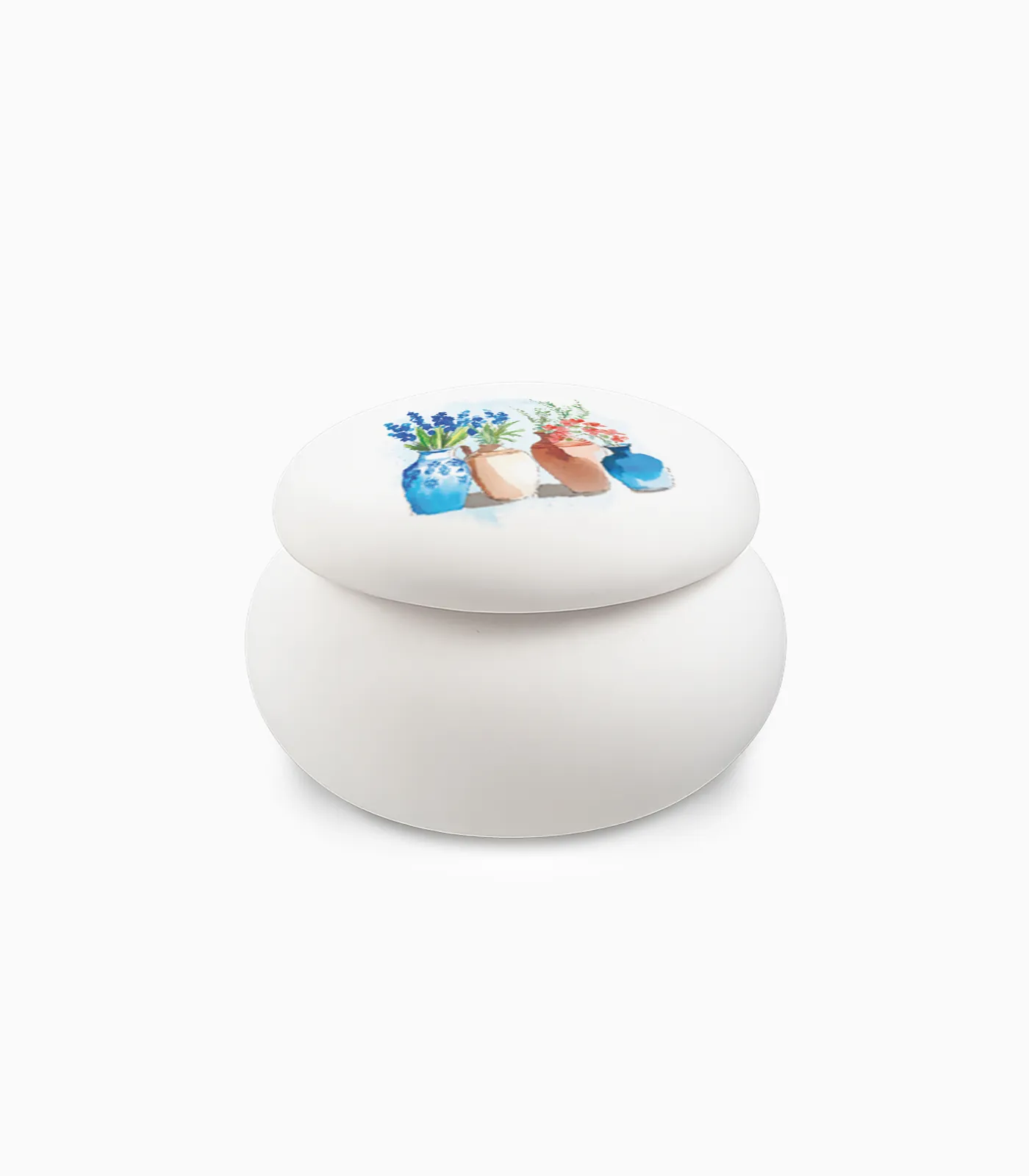 Κατασκευασμένο από υψηλής ποιότητας γύψο, το βαζάκι διαθέτει στιβαρή κατασκευή και λεία επιφάνεια. Οι διαστάσεις του το καθιστούν ιδανικό για τοποθέτηση σε ράφια, βιτρίνες ή gift displays χωρίς να καταλαμβάνει μεγάλο χώρο.