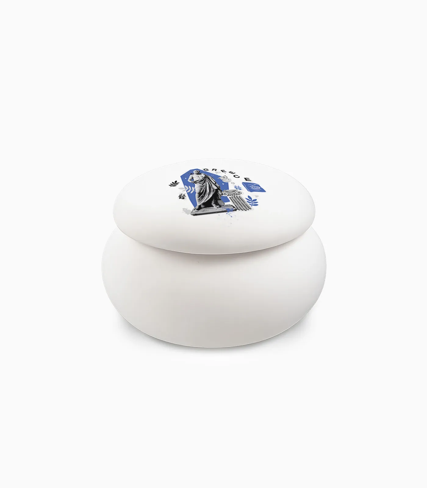 Κατασκευασμένο από υψηλής ποιότητας γύψο, το βαζάκι διαθέτει στιβαρή κατασκευή και λεία επιφάνεια. Οι διαστάσεις του το καθιστούν ιδανικό για τοποθέτηση σε ράφια, βιτρίνες ή gift displays χωρίς να καταλαμβάνει μεγάλο χώρο.