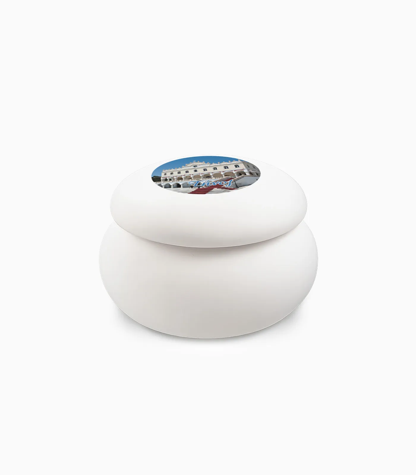Με καθαρές γραμμές και διακριτικό σχήμα μακαρόν, το βαζάκι προσφέρει μια μοντέρνα αισθητική που ξεφεύγει από τα κλασικά τουριστικά αντικείμενα. Ανήκει στη θεματική Folklore, προτείνοντας μια πιο σύγχρονη προσέγγιση στον χώρο των αναμνηστικών δώρων.