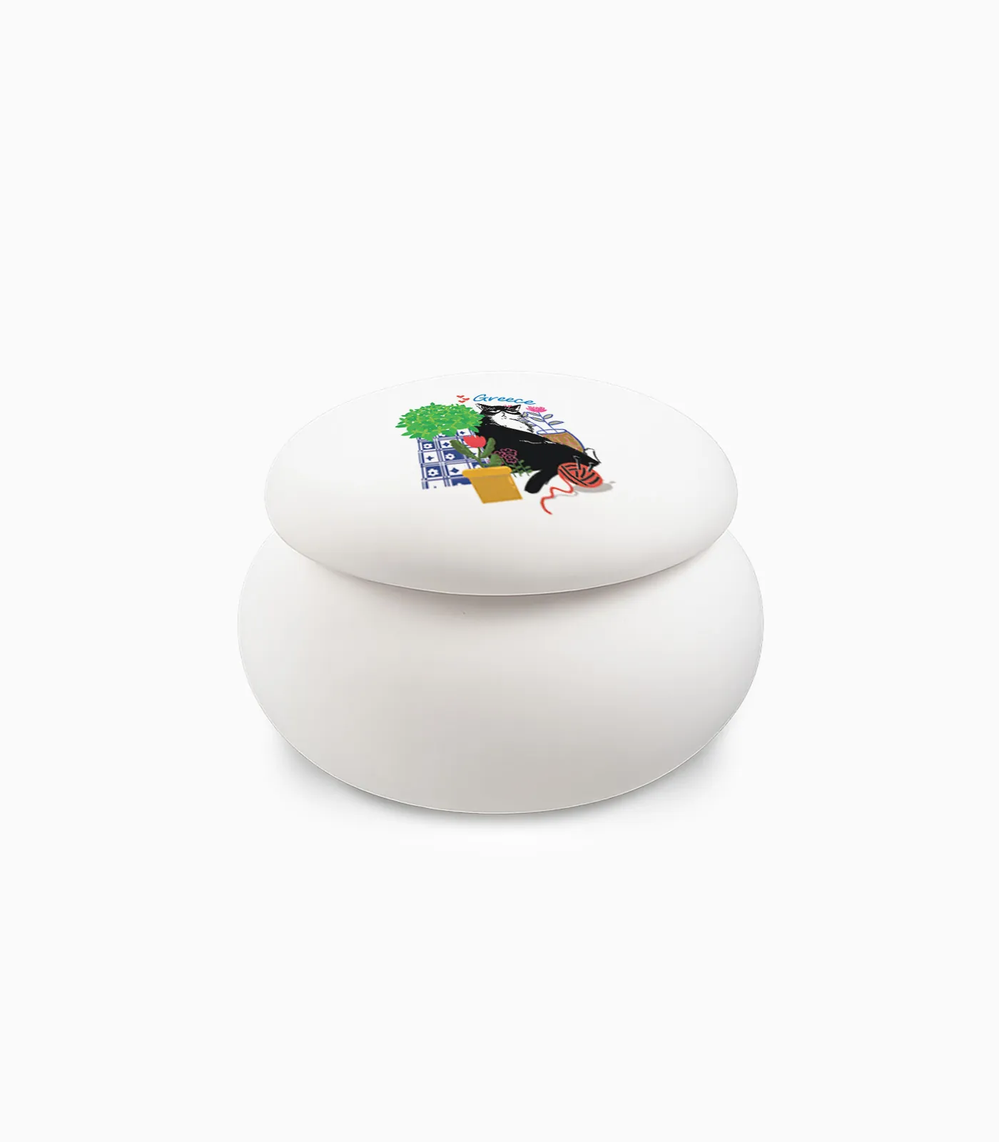 Με καθαρές γραμμές και διακριτικό σχήμα μακαρόν, το βαζάκι προσφέρει μια μοντέρνα αισθητική που ξεφεύγει από τα κλασικά τουριστικά αντικείμενα. Ανήκει στη θεματική Folklore, προτείνοντας μια πιο σύγχρονη προσέγγιση στον χώρο των αναμνηστικών δώρων.