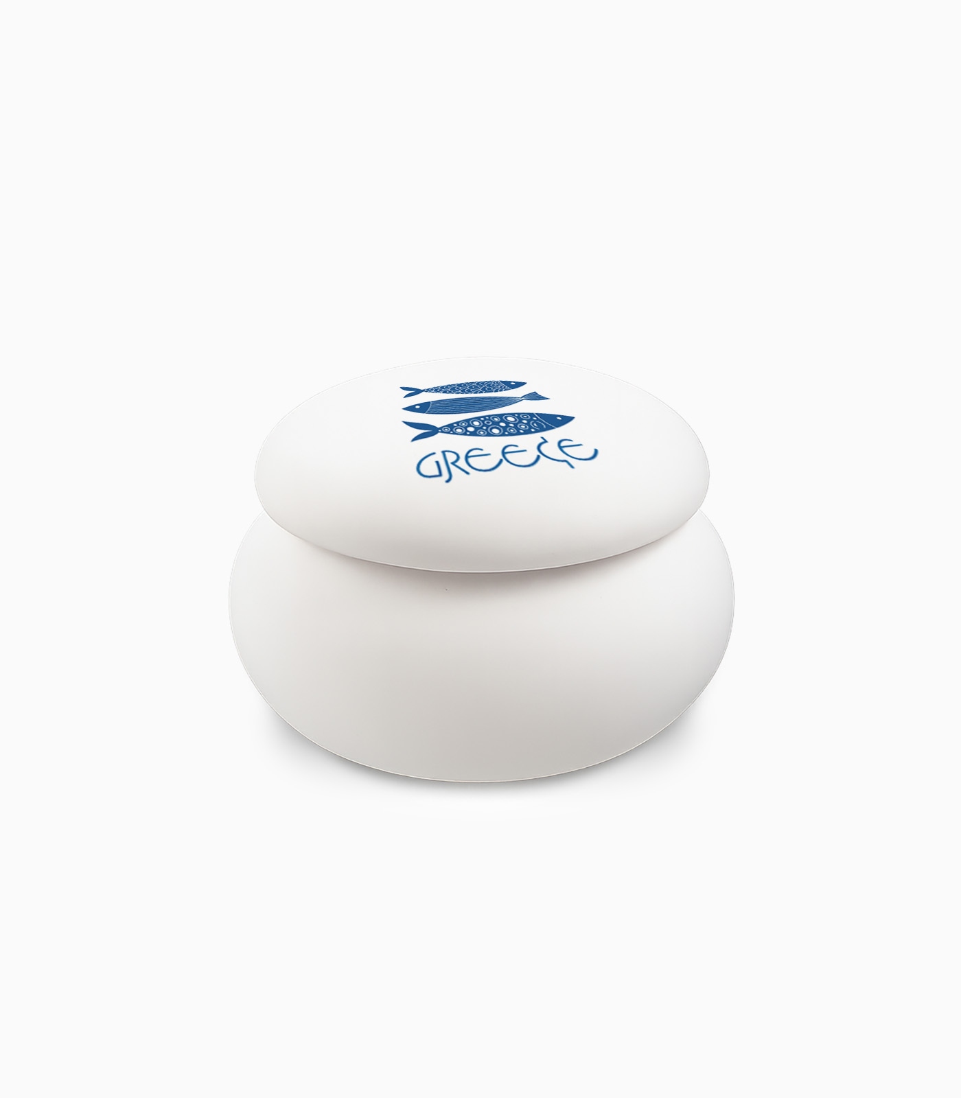 Με καθαρές γραμμές και διακριτικό σχήμα μακαρόν, το βαζάκι προσφέρει μια μοντέρνα αισθητική που ξεφεύγει από τα κλασικά τουριστικά αντικείμενα. Ανήκει στη θεματική Folklore, προτείνοντας μια πιο σύγχρονη προσέγγιση στον χώρο των αναμνηστικών δώρων.