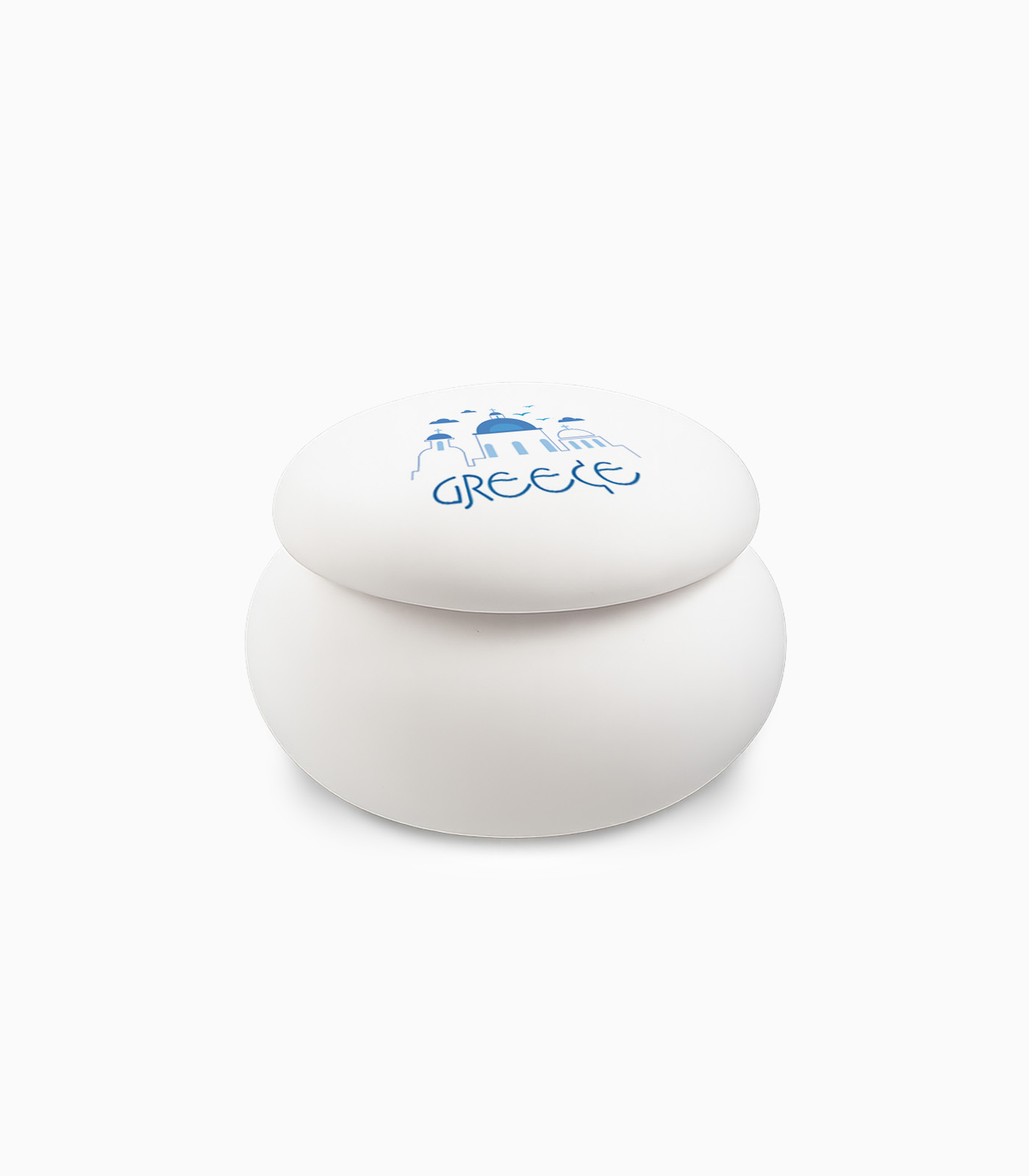 Με καθαρές γραμμές και διακριτικό σχήμα μακαρόν, το βαζάκι προσφέρει μια μοντέρνα αισθητική που ξεφεύγει από τα κλασικά τουριστικά αντικείμενα. Ανήκει στη θεματική Folklore, προτείνοντας μια πιο σύγχρονη προσέγγιση στον χώρο των αναμνηστικών δώρων.