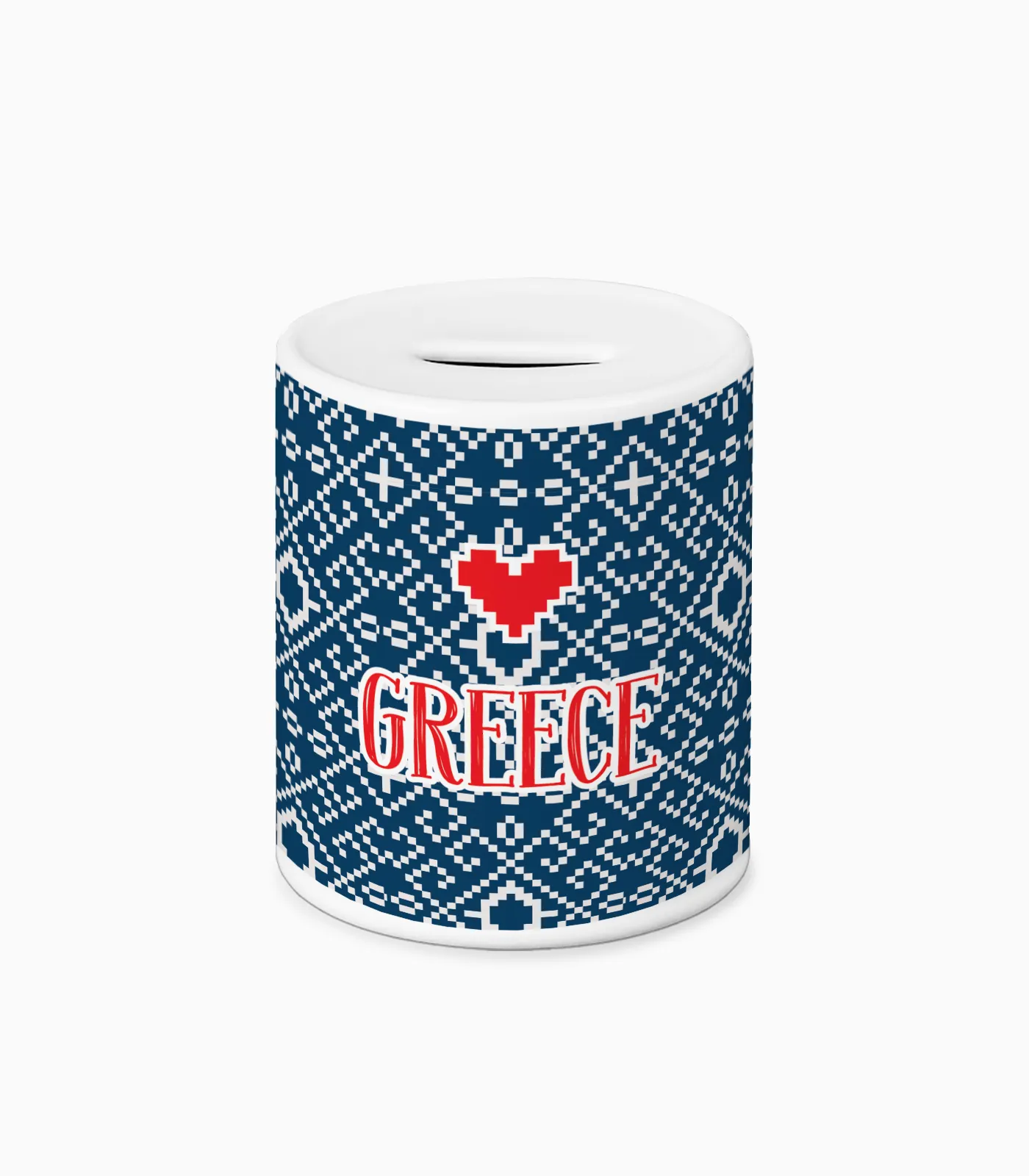 Κεραμικός κουμπαράς με περιμετρική εκτύπωση και πρακτική τάπα στο κάτω μέρος, ιδανικός ως εποχιακό souvenir και αναμνηστικό δώρο. Κλασικός σχεδιασμός, κατάλληλος για τουριστικά καταστήματα και gift shops.