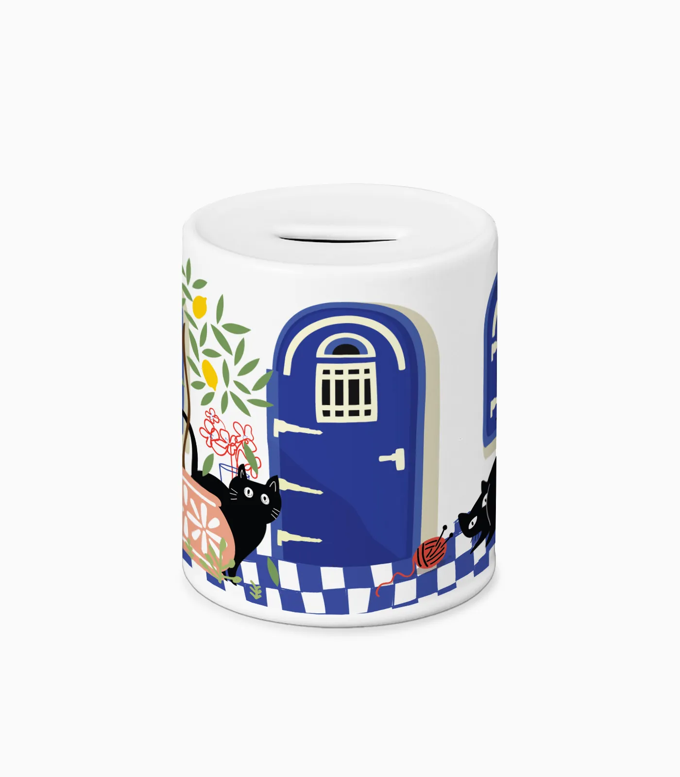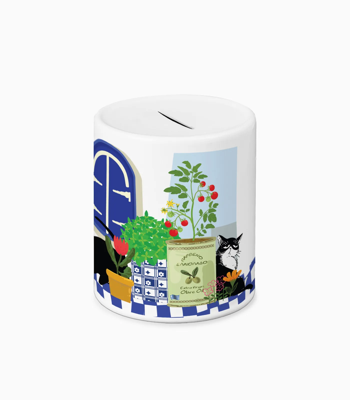 Κεραμικός κουμπαράς με περιμετρική εκτύπωση και πρακτική τάπα στο κάτω μέρος, ιδανικός ως εποχιακό souvenir και αναμνηστικό δώρο. Κλασικός σχεδιασμός, κατάλληλος για τουριστικά καταστήματα και gift shops.