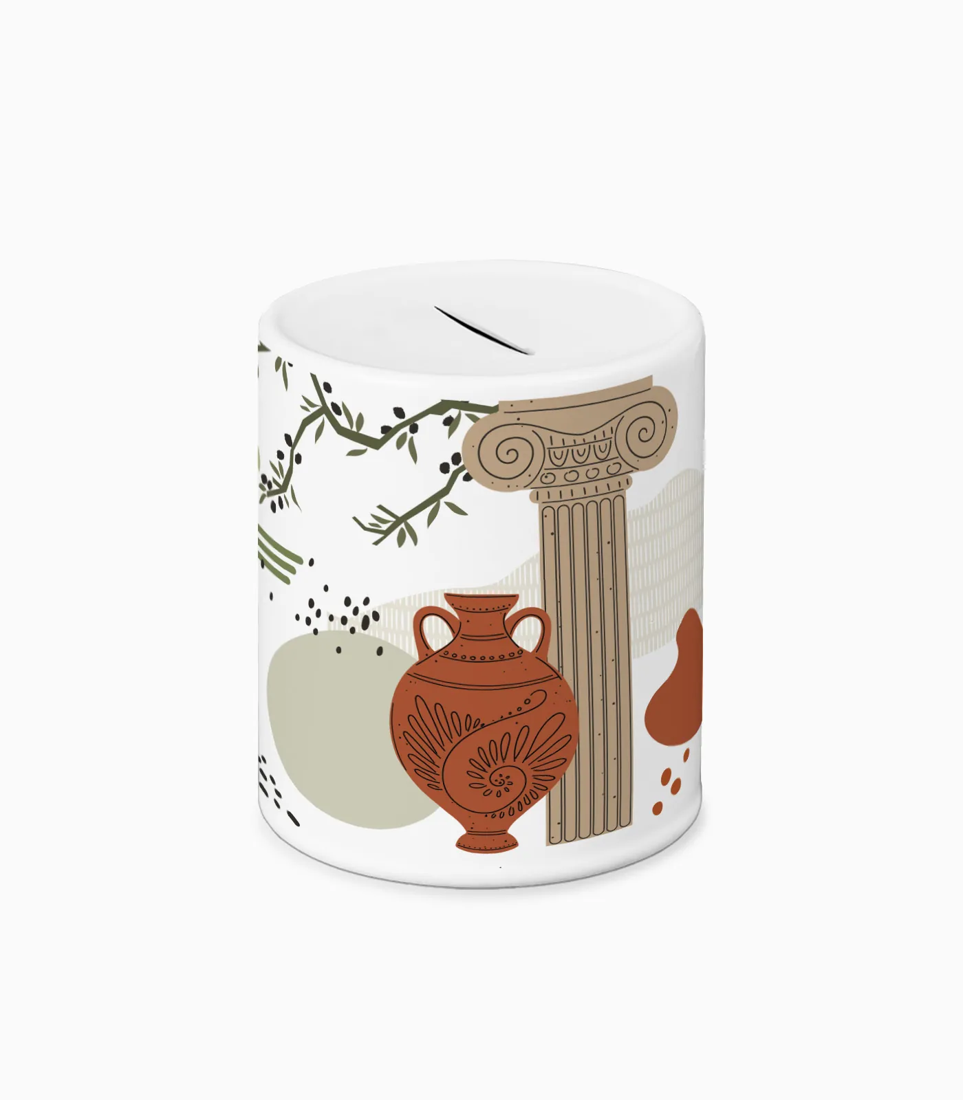 Κεραμικός κουμπαράς με περιμετρική εκτύπωση και πρακτική τάπα στο κάτω μέρος, ιδανικός ως εποχιακό souvenir και αναμνηστικό δώρο. Κλασικός σχεδιασμός, κατάλληλος για τουριστικά καταστήματα και gift shops.
