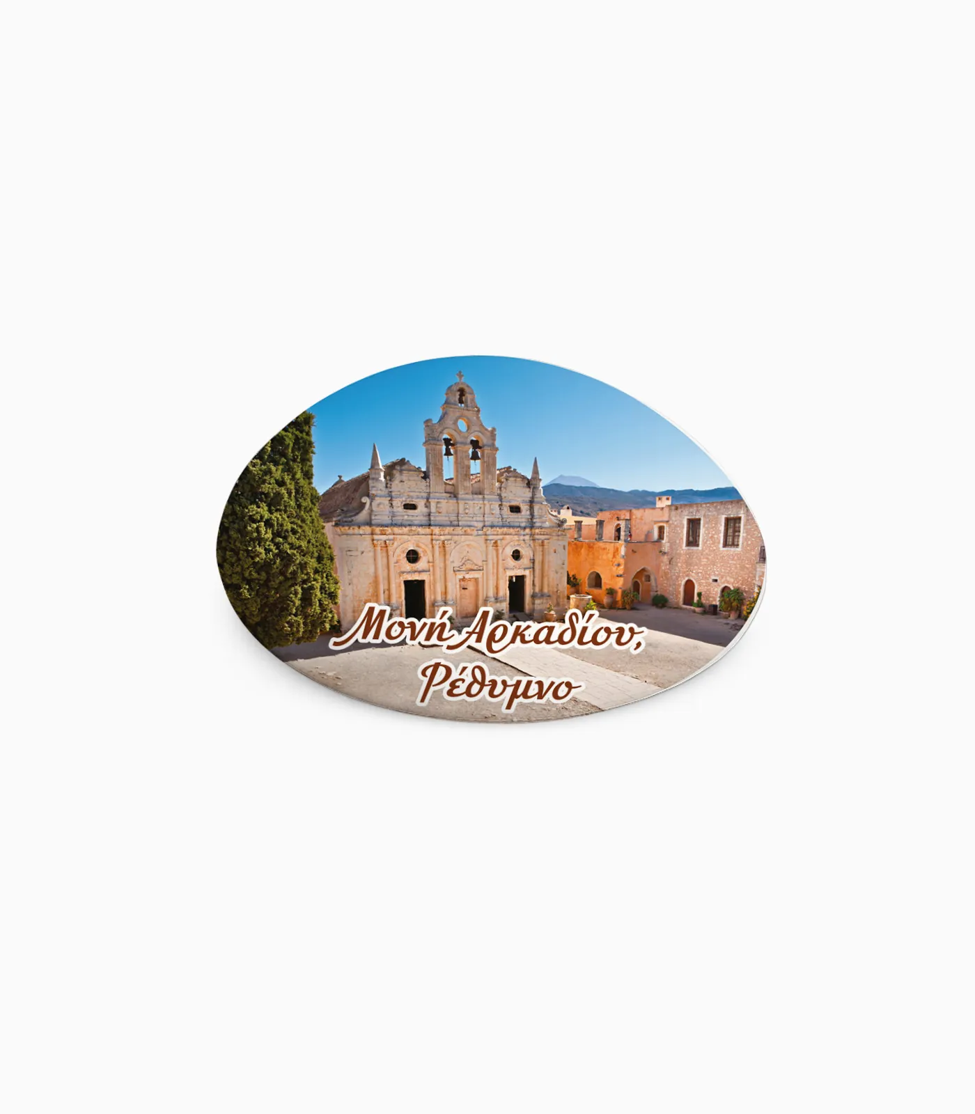 Το στρογγυλό σχήμα τύπου βότσαλο δημιουργεί μια οργανική και φυσική εικόνα, ιδανική για ανάδειξη θεμάτων πολιτιστικού ή τοπικού χαρακτήρα. Η καθαρή επιφάνεια επιτρέπει την ευκρινή προβολή του σχεδίου, καθιστώντας το μαγνητάκι κατάλληλο για συλλογές souvenir με minimal αισθητική.
