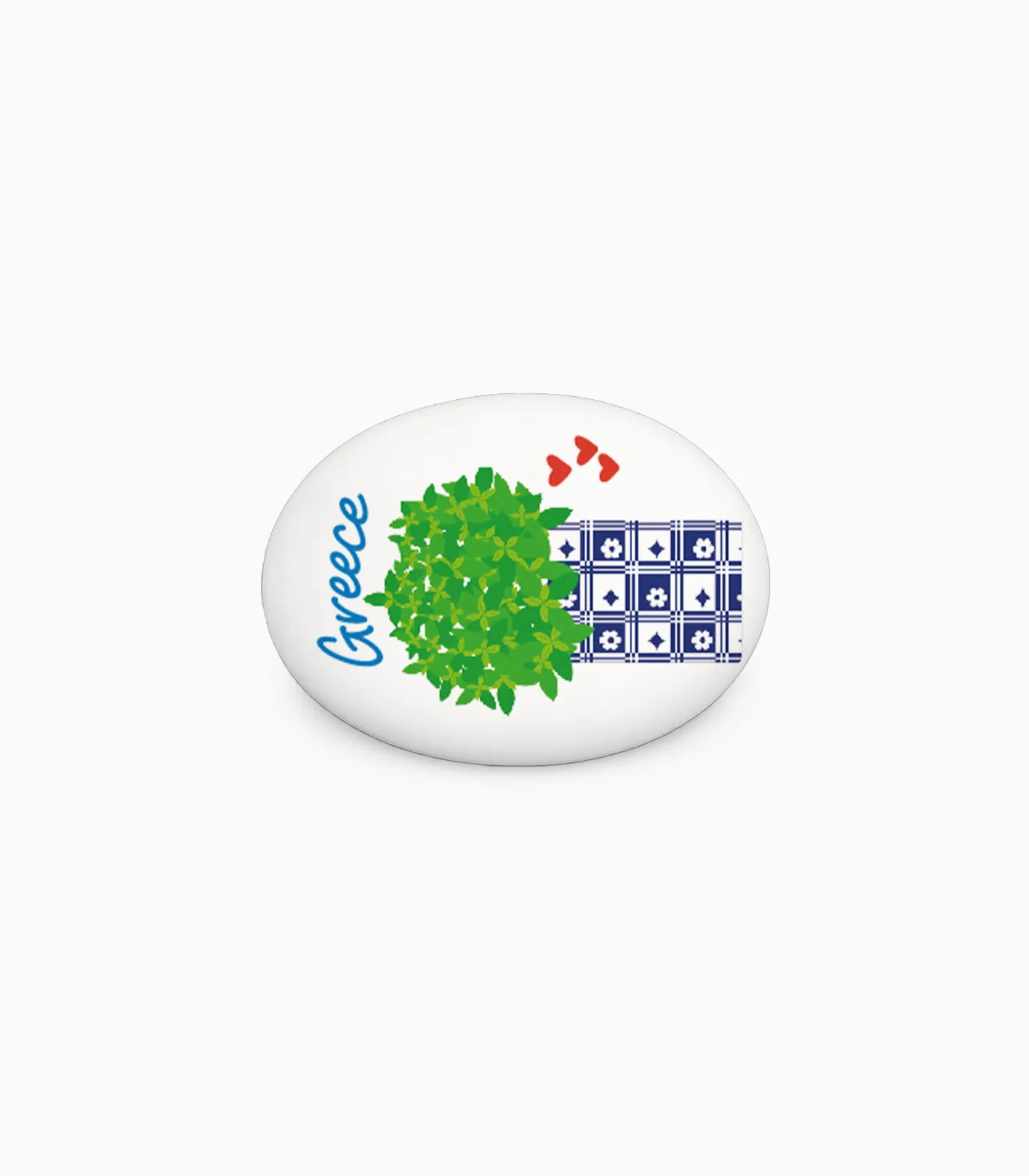 Το στρογγυλό σχήμα τύπου βότσαλο δημιουργεί μια οργανική και φυσική εικόνα, ιδανική για ανάδειξη θεμάτων πολιτιστικού ή τοπικού χαρακτήρα. Η καθαρή επιφάνεια επιτρέπει την ευκρινή προβολή του σχεδίου, καθιστώντας το μαγνητάκι κατάλληλο για συλλογές souvenir με minimal αισθητική.