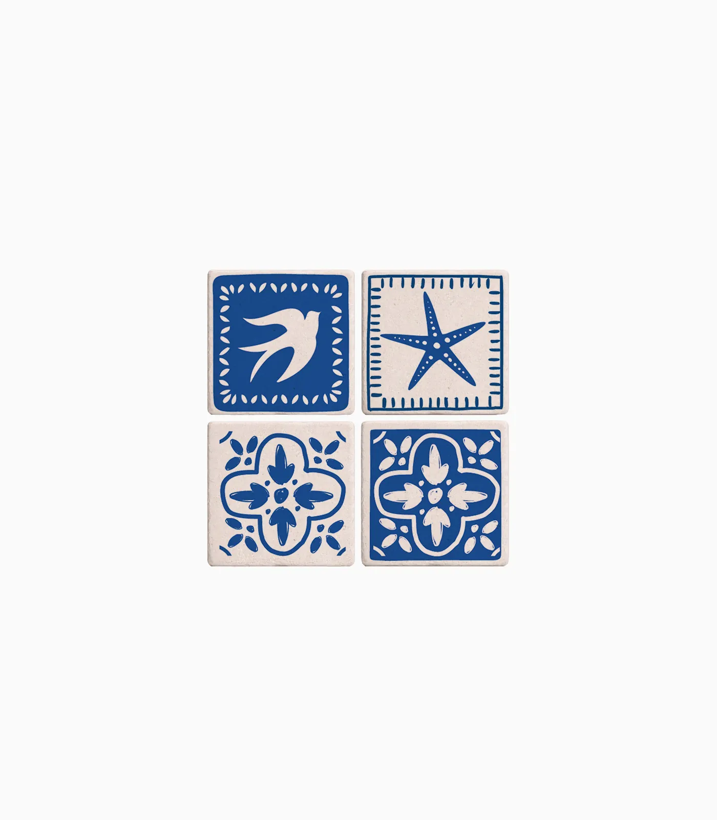 Σετ 4 μαγνητάκια από φυσική πέτρα, διαστάσεων 2,5 × 2,5 cm το καθένα. Ιδανικό για τουριστικό souvenir ή αναμνηστικό δώρου, με αυθεντική υφή και διαχρονική αισθητική.