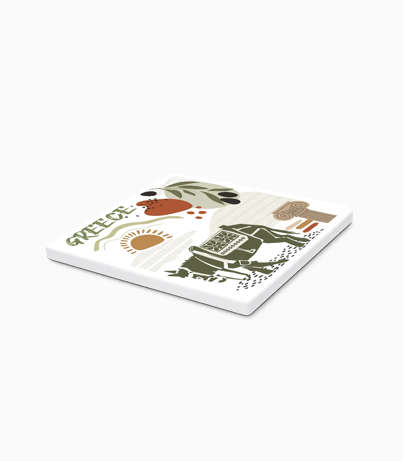 Με καθαρές γραμμές και minimal αισθητική, το σουβέρ προσφέρει μια ισορροπημένη παρουσία τόσο ως αυτόνομο προϊόν όσο και ως μέρος σύνθεσης σε σετ δώρου. Η εκτύπωση σε μία όψη αναδεικνύει το σχέδιο, διατηρώντας παράλληλα μια διακριτική και κομψή εικόνα που ταιριάζει σε τουριστικό και πολιτιστικό περιβάλλον.