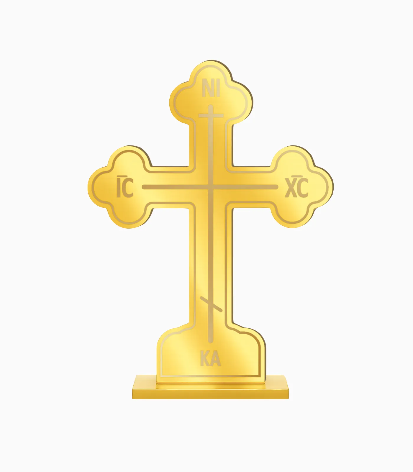 Διακοσμητικός σταυρός από plexiglass με βάση, εμπνευσμένος από την εκκλησιαστική παράδοση. Κομψό και διαχρονικό souvenir, ιδανικό για καταστήματα δώρων και τουριστικά σημεία.