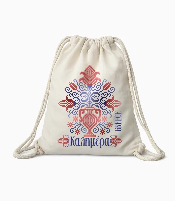 Λινή τσάντα πλάτης με εκτύπωση και φυσική υφή, ιδανική για τουριστικό souvenir ή πρακτικό δώρο. Ελαφριά και άνετη, κατάλληλη για καθημερινή χρήση και καταστήματα δώρων.