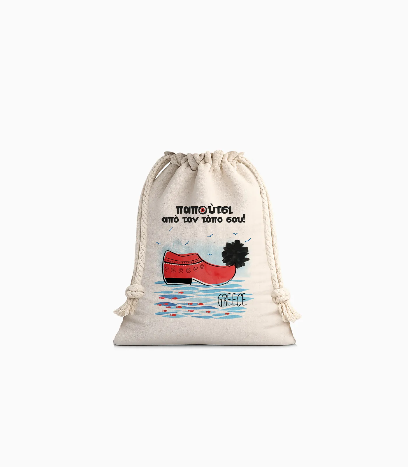 Λινό τσαντάκι δώρου με κορδόνι και φυσική υφή, ιδανικό για τουριστικό souvenir ή συσκευασία δώρου. Διακριτικό και πρακτικό, κατάλληλο για καταστήματα δώρων και θεματικές συλλογές.